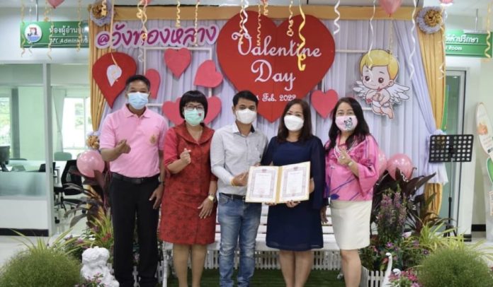 Marriage registration service in 50 district offices in Bangkok individually surprised couples with special love events and related services such as prize-giving, photo shooting, family planning counseling, etc., under strict health measures as usual.