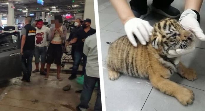 According to Pol Colonel Wisit, the suspects offered to sell the tiger cub for 400,000 baht to an undercover officer, while demanding that 200,000 baht be initially deposited into their bank accounts. While meeting up at the shopping mall to hand over the remaining 200,000 baht to the men, the officer, and other team members revealed their identities and placed the men under an arrest.