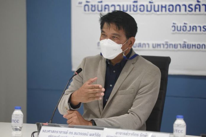 Mr. Thanavath Phonvichai, UTCC President and Chief Advisor to the university’s Center for Economic and Business Forecasting (CEBF), said consumers start to notice a slight economic recovery as the COVID-19 situation in Thailand starts to wind down, together with the relaxation of measures allowing businesses to operate as usual.
