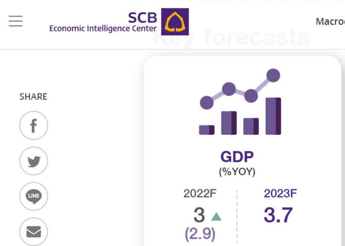Siam Commercial Bank’s Economic Intelligence Center has readjusted up its projection for Thailand’s GDP growth at 3% this year and 3.7% next year, thanks to the recovery of tourism and private consumption.