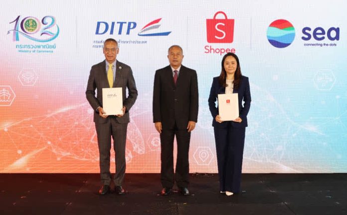 Deputy Commerce Minister Sinit Lertkrai presided over the agreement signed between the Department of International Trade Promotion (DITP) and Shopee Thailand Co, Ltd.
