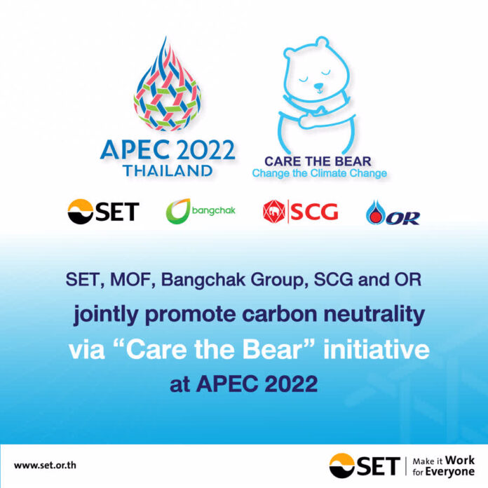 To achieve a low-carbon society and to make the APEC Economic Leaders’ Week Media Center carbon neutral, the Stock Exchange of Thailand (SET), the Ministry of Foreign Affairs, and capital market partners Bangchak Group, SCG, and PTT Oil and Retail Business pcl (OR) promote the “Care the Bear” project. The stock exchange’s dominance is bolstered by the SET’s balanced and steady growth. Under the global warming effort, SET will implement its six care practices at the “Green Media Center,” a model for environmental management, efficient resource and energy consumption, and integrated and tangible waste management.