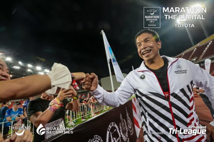 Minister of Tourism and Sports Pipat Ratchakitprakarn opened the event at the Rajamangala National Stadium, and participants then made their way through some of Bangkok’s most iconic landmarks, including the Victory Monument, the Rama 8 bridge, the old parliament building, and the Benchamabophit Marble Temple. About 25,000 people took part in the event, including Bangkok Governor Chadchart Sittipunt.