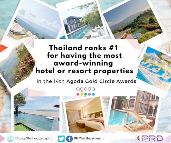 In the 14th annual Agoda Gold Circle Awards, Thailand topped the list of countries with the most hotels and resorts that have won individual awards (GCA).