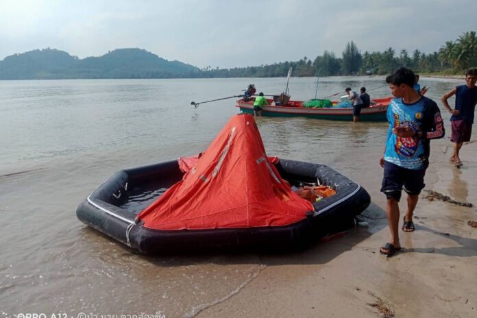 Mu Koh Chumphon National Park Chief Mr. Suwant too Sansuk said, in the most recent development from late last night, it was claimed that a fishing vessel, while out on the water, spotted a lifeboat adrift in the gas column. Approximately five nautical miles from shore, in the region of Lang Suan, an orange life jacket was discovered drifting about five hundred meters from the rescue vessel.