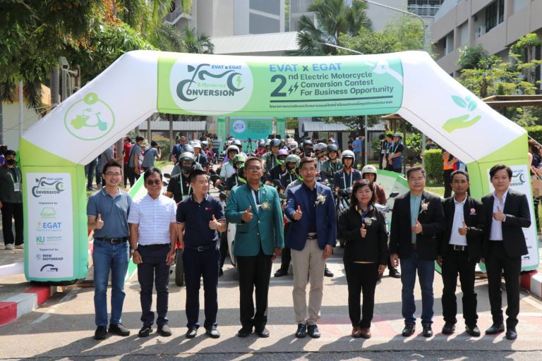 Kasetsart University Sriracha Campus in Chonburi Province hosted the opening ceremony of the 2nd modified electric motorcycle competition, organized by the Thai Electric Vehicle Association and the Electricity Generating Authority of Thailand (EGAT). The event aimed to support the growth of the electric vehicle industry and foster knowledge transfer in automotive innovation and electrical engineering.