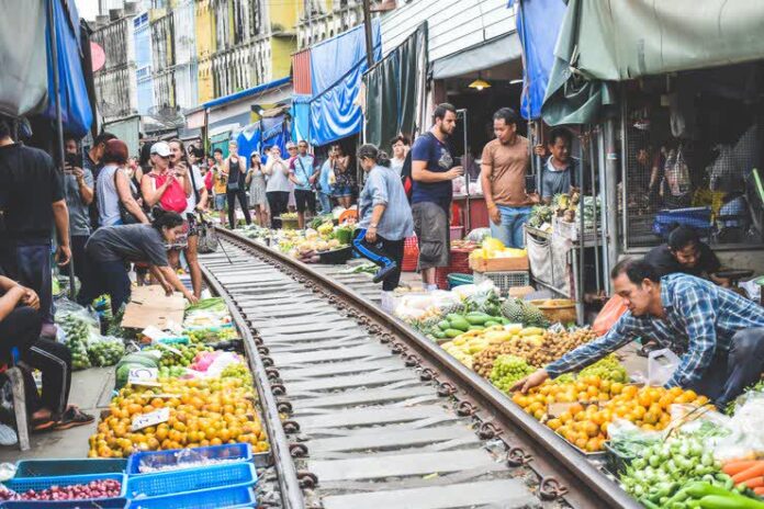 The world-renowned Mae Klong Railway Market, situated in Samut Sakhon, Thailand, has recently introduced a set of safety protocols. This market, famed for vendors trading their wares right on the railway tracks, now requires stalls to be positioned at a minimum distance of 40-70 centimeters away from the rails. This strategic move aims to alleviate congestion and prevent potential accidents when trains pass through. The market, which has preserved its tradition of trading even before the train’s arrival in 1905, remains a local marketplace despite attracting hundreds of tourists daily.