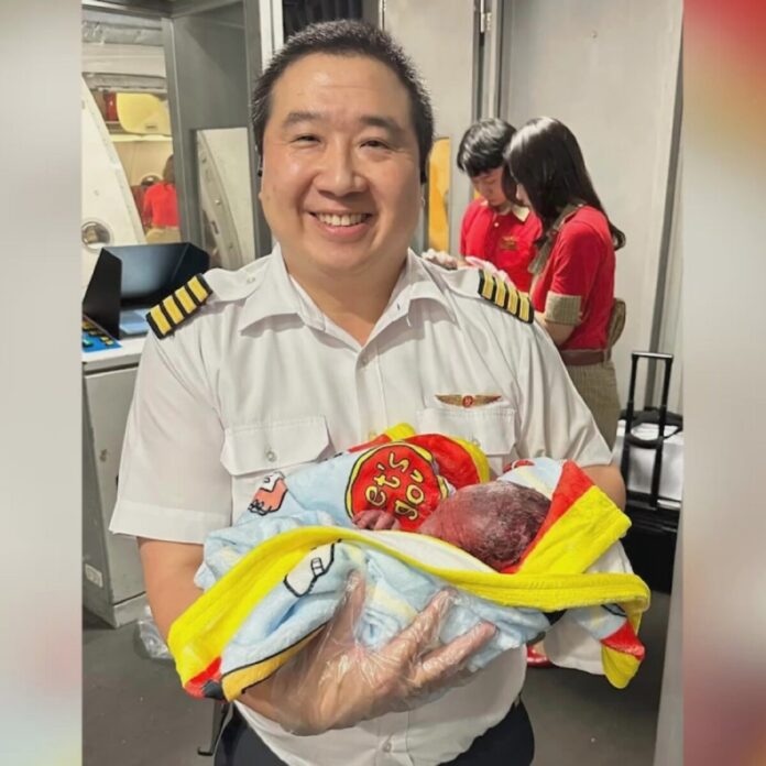 In a remarkable turn of events reminiscent of scenes from an action-packed Hollywood blockbuster, a pilot on a Thai airline flight became an unexpected hero when he delivered a baby mid-flight from Taipei to Bangkok. Jakarin Sararnrakskul, a seasoned pilot with nearly two decades of experience, found himself thrust into the role of a midwife when a pregnant passenger went into labor during the four-hour journey on Friday, February 23rd.