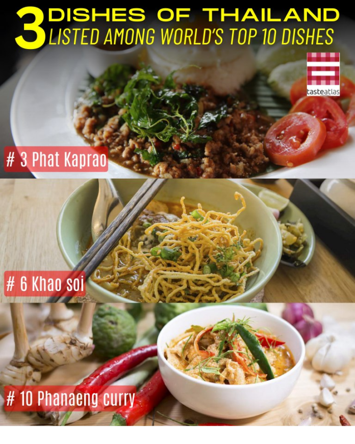 In a recent announcement by Tasteatlas, a renowned culinary website, Thailand’s gastronomic prowess shines through as three of its iconic dishes secure spots in the prestigious list of the world’s top 10 dishes. Phat kaphrao, khao soi, and phanaeng curry have claimed their well-deserved positions, captivating taste buds globally.