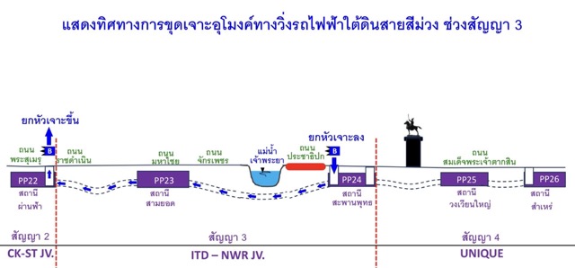 The Purple Line South’s tunneling and underground station construction fall under the third contract of the project, spearheaded by Italian-Thai Development Public Company Limited and Nawarat Patanakarn Public Company Limited. With groundwork commencing on March 25th, 2020, the project is overseen by the Mass Rapid Transit Authority of Thailand (MRTA).