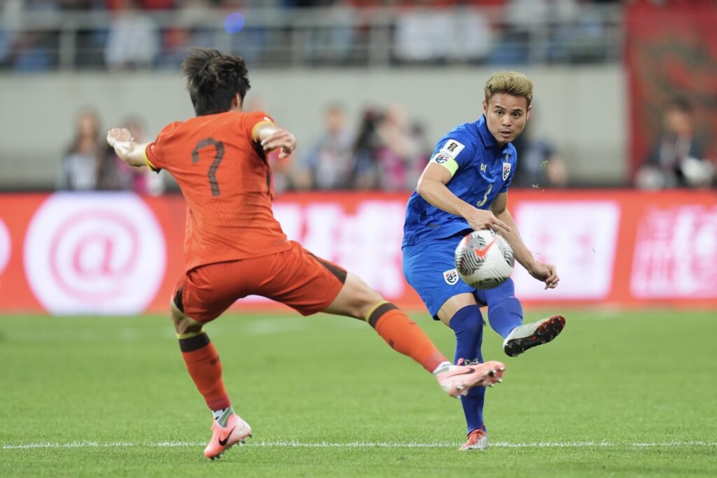 Thailand’s national football team tied with China 1-1 in an away match, the Group C match of the 2026 FIFA World Cup Asian qualifiers, held in Shenyang, Liaoning Province, on June 6, 2024.