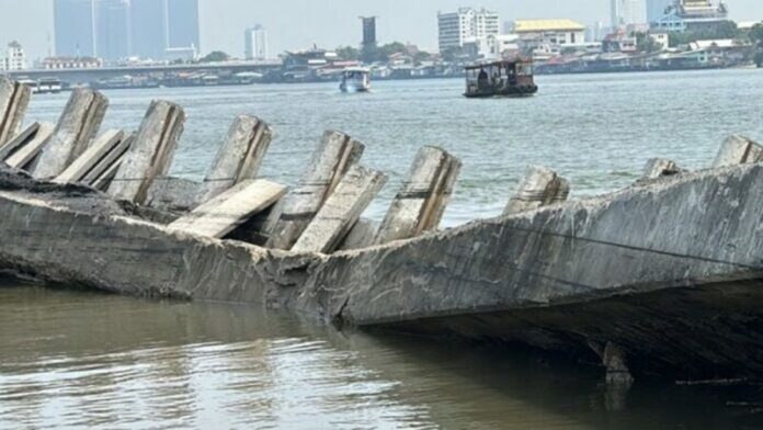 A section of the Chao Phraya River embankment in Nonthaburi’s Pak Kret district collapsed on June 9, 2024, causing concern among local residents and government officials. The incident occurred at approximately 5:40 p.m., leaving a 75-meter stretch littered with concrete debris and exposed rebar. Phra Khru Nontakun Phiphat, the head monk of Wat Choeng Lane temple, promptly reported the collapse to local authorities at 6:40 p.m.