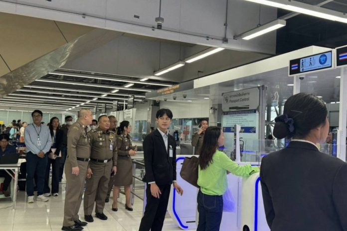 Welcomed by Pol. Maj. Gen. Cheeringron Rimphadee, the inspection focused on the newly installed e-gates aimed at streamlining passport control. These Automatic Channels, supported by Airports of Thailand (AOT), are being implemented in phases, with 13 out of the planned 56 e-gates currently operational in the departure area.