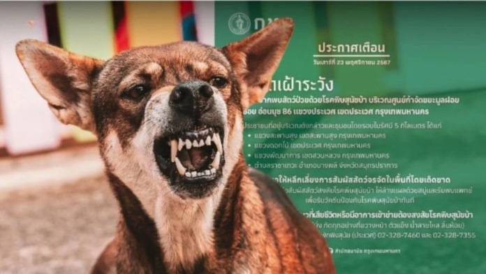 Bangkok, 29 November 2024 – Authorities have urged vigilance following a confirmed rabies outbreak near a garbage treatment facility in Soi Onnut 86, Prawet district. The Bangkok Metropolitan Administration (BMA) announced the detection of rabies among stray dogs in the area, prompting swift containment measures.