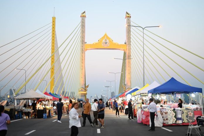 Blending modern engineering with traditional Thai architectural elements, the bridge reflects Thailand’s cultural heritage while addressing the demands of modern infrastructure. The official pedestrian preview has drawn significant interest, adding a touch of festivity to the city.
