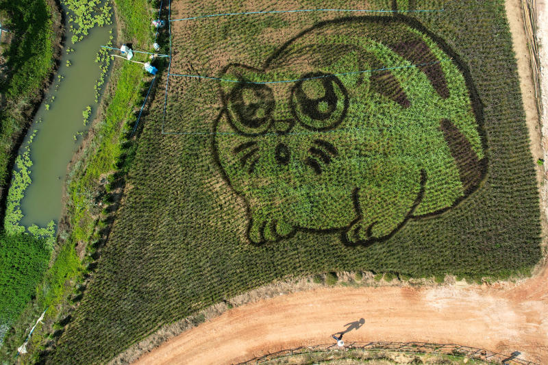 Thai Farmer Creates Dragon and Cat Artwork in Rice Field