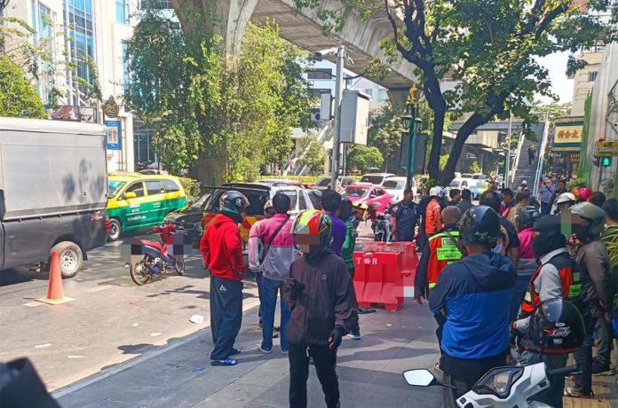 Seree, the driver of the car, was apprehended at the scene and taken to the Lumpini police station. According to police and witnesses, Seree’s car struck Ritthisak’s motorcycle as he was driving from the Asoke-Sukhumvit intersection towards the Ploenchit intersection. After the collision, Seree failed to stop and drove away, prompting Ritthisak to follow the car.